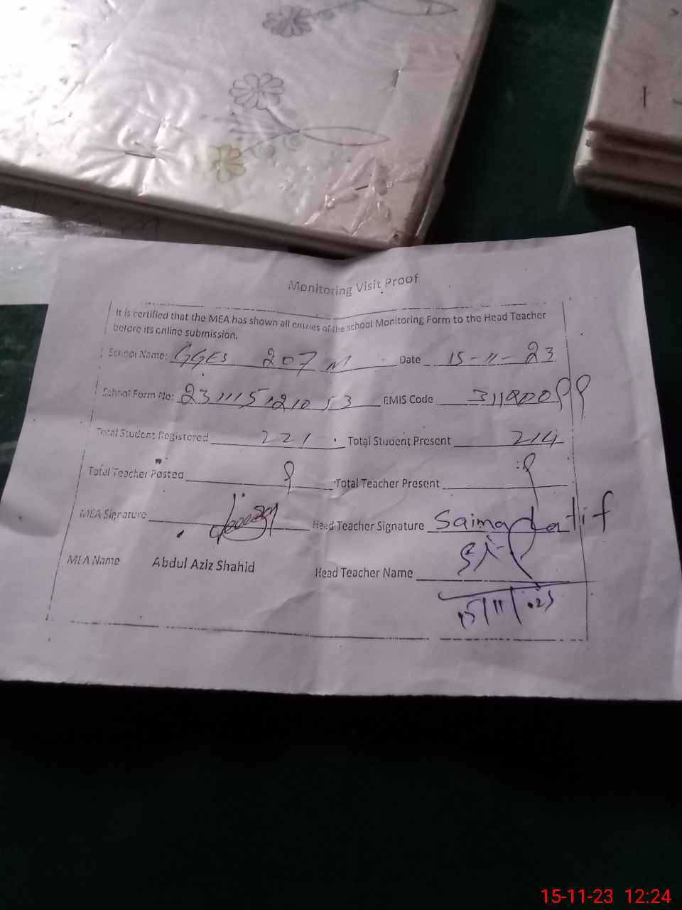 | EMIS Code: 31120099 | Name of School: GGES CHAK NO. 207/M | |||