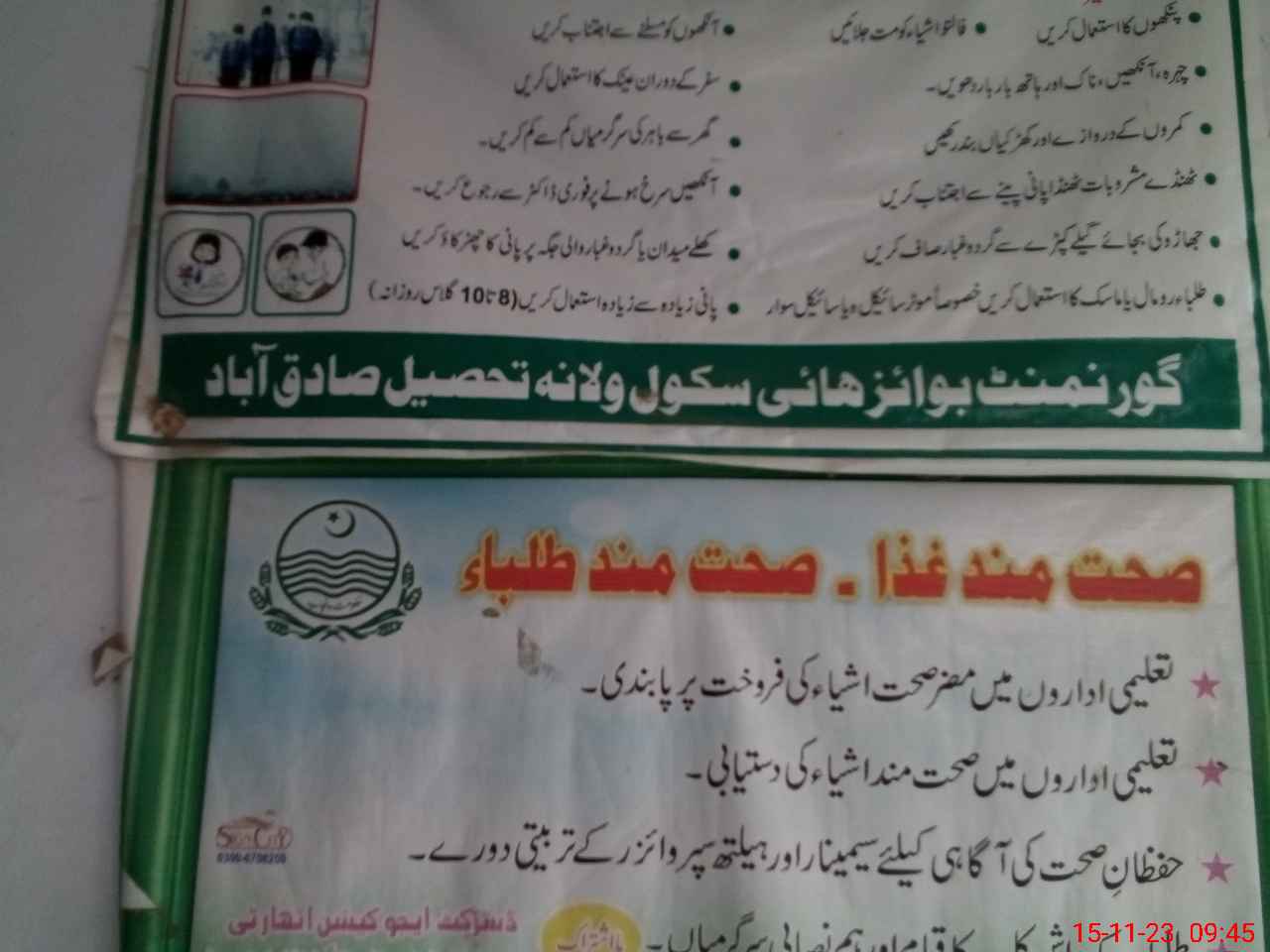| District: RAHIMYAR KHAN | Tehsil: SADIQABAD | Markaz: SECONDARY-WING | Level: High | |