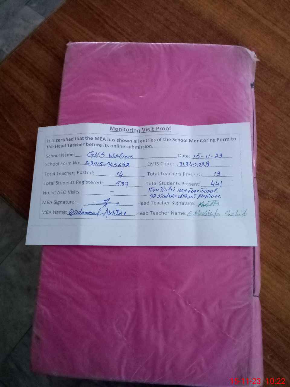 | EMIS Code: 31340028 | Name of School: GHS WALANA | |||