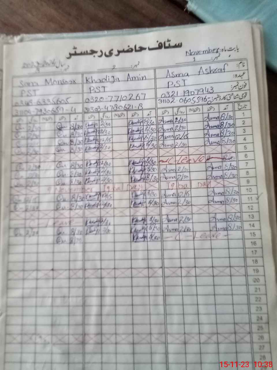 | CNIC | Full Name | Designation | R/C | Absence During Last Calender Month |