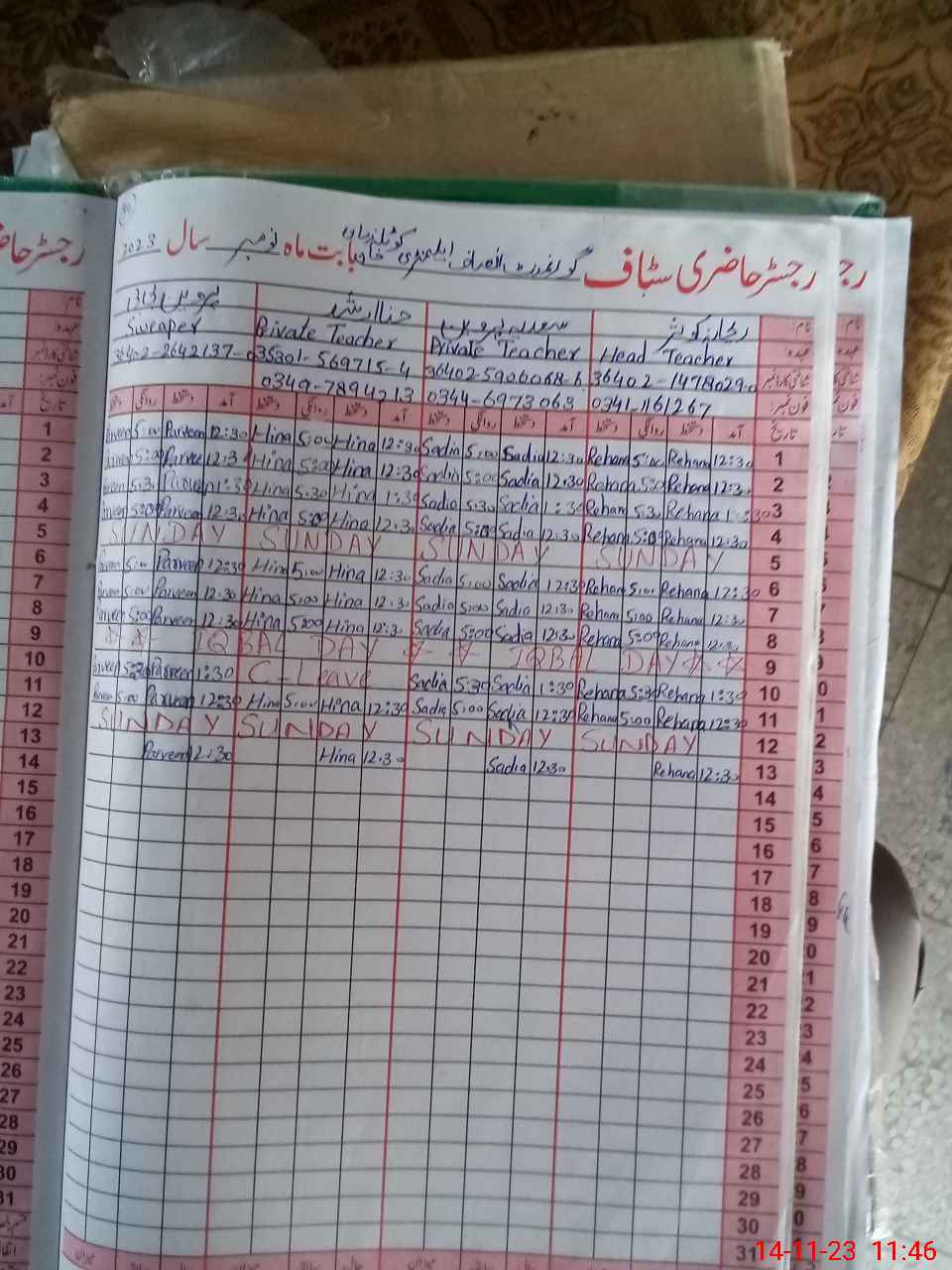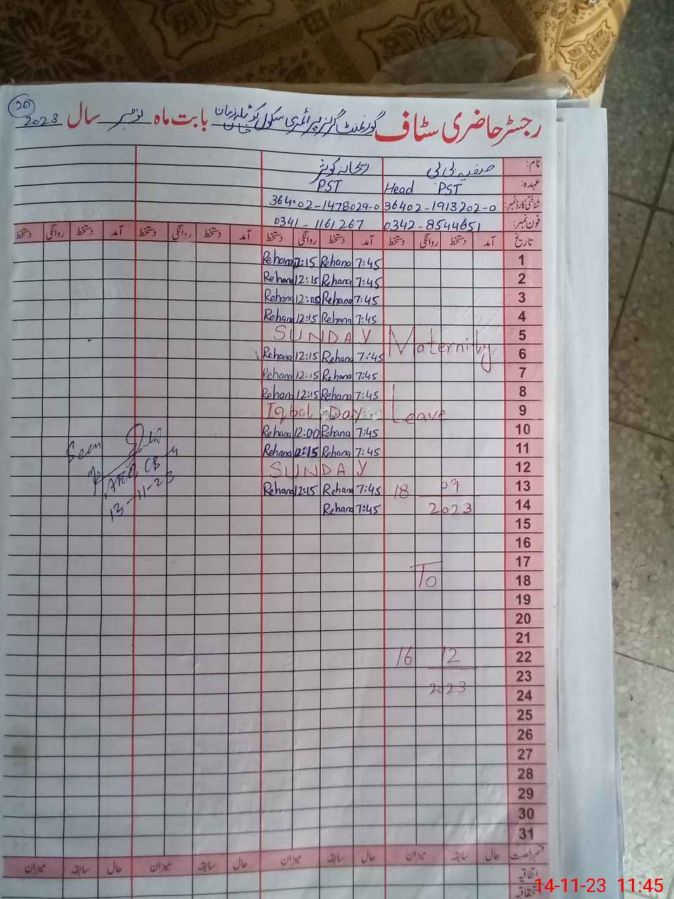 | Name: Sa**** Bi**** Designation: (School Headmaster's/Headmistress's) PST Phone/Cell Number: 03**** |