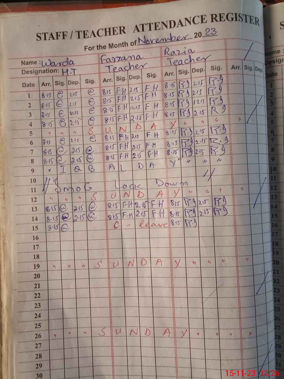 | CNIC | Full Name | Designation | R/C | Absence During Last Calender Month |