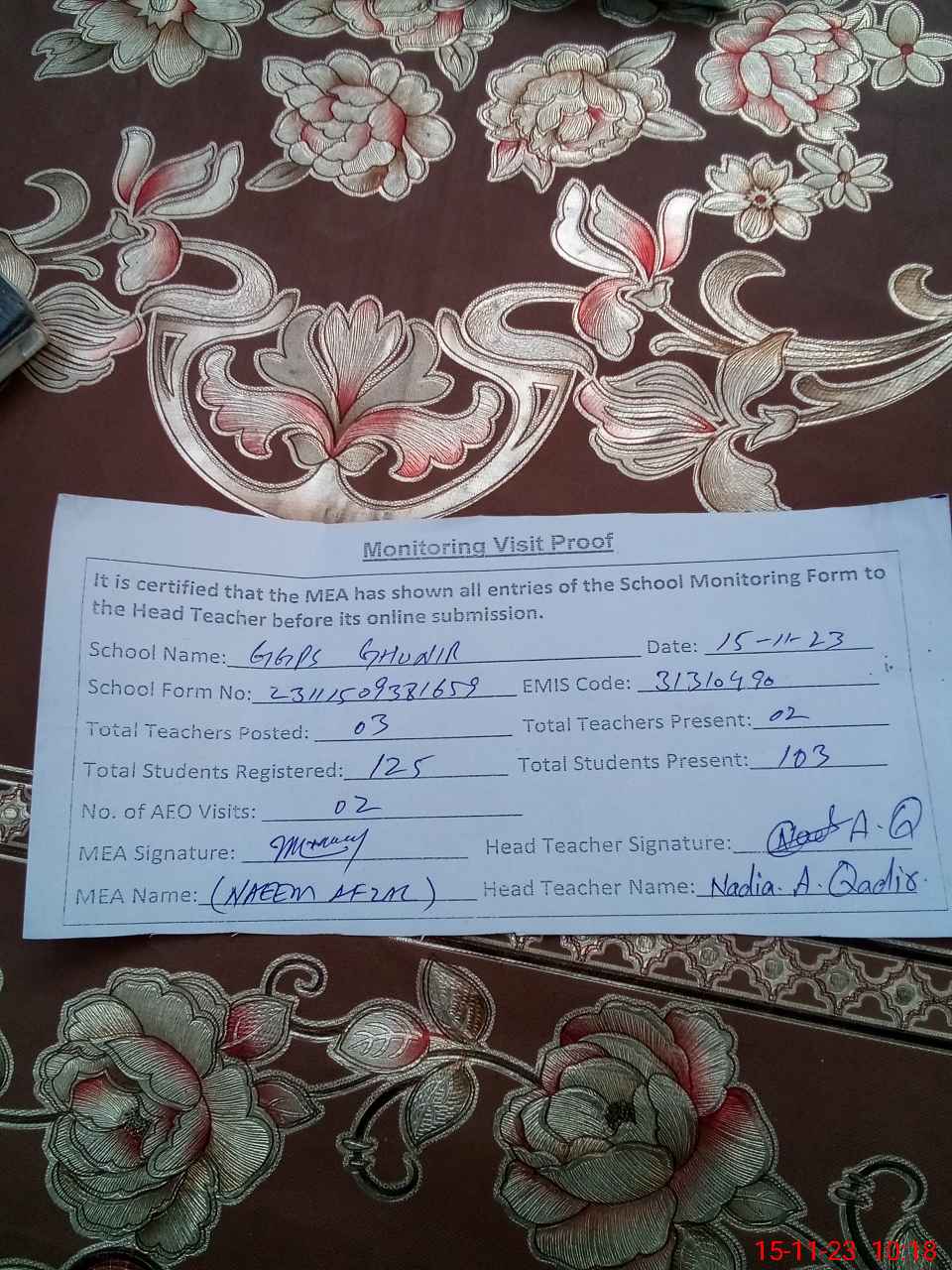 | EMIS Code: 31310490 | Name of School: GGPS BASTI GHUNEER | |||