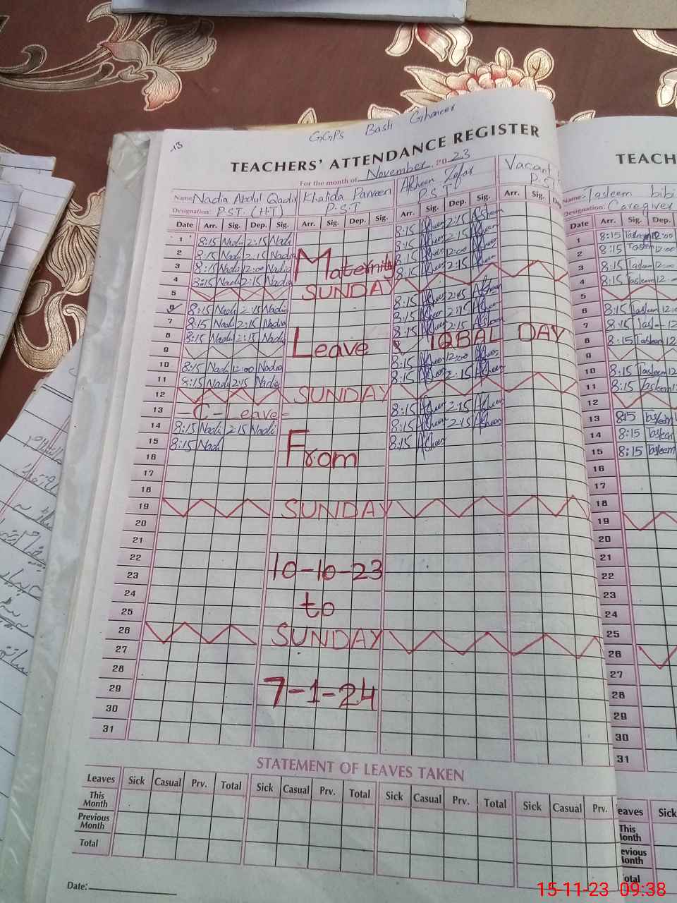 | 31**** | Kh**** Pa**** | 1 | 1 | 0 | 0 | 0 | 0 | 0 | 0 | 0 | 0 | 0 | Maternity |