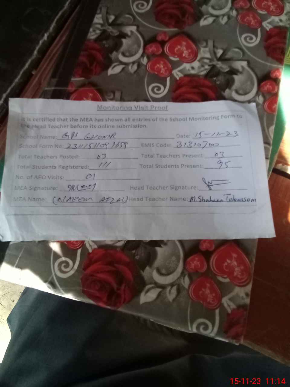 | EMIS Code: 31310700 | Name of School: GPS GHANIR | |||