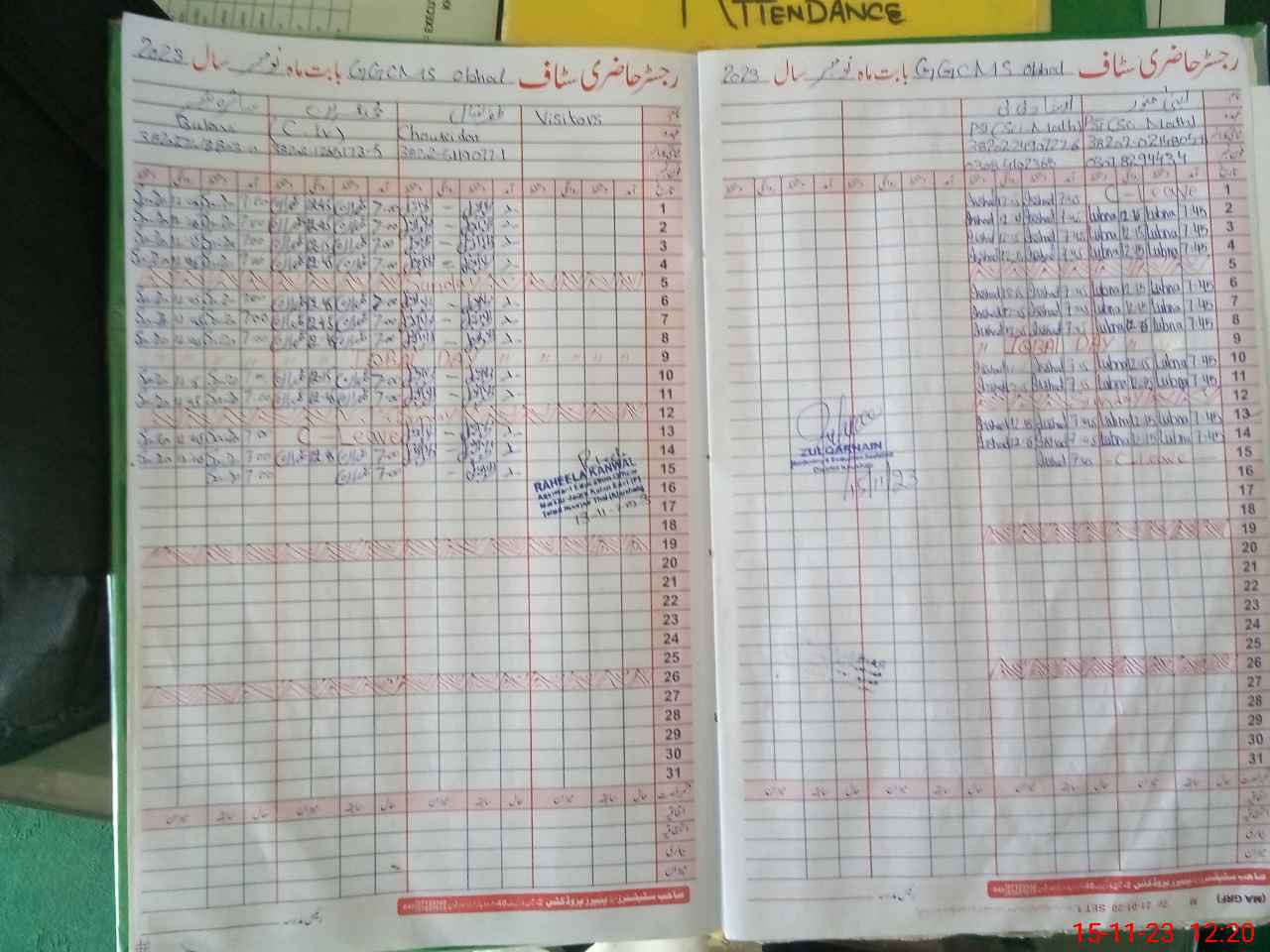 | CNIC | Full Name | Designation | R/C | Absence During Last Calender Month |