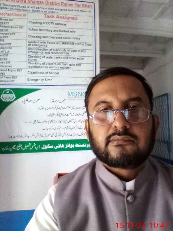 | Name: Mu**** Fa**** Designation: (School Headmaster's/Headmistress's) SST (SCIENCE ) Phone/Cell Number: 03**** |