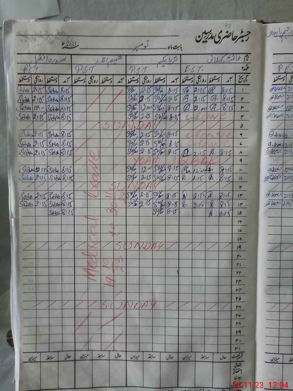 | CNIC | Full Name | Designation | R/C | Absence During Last Calender Month |