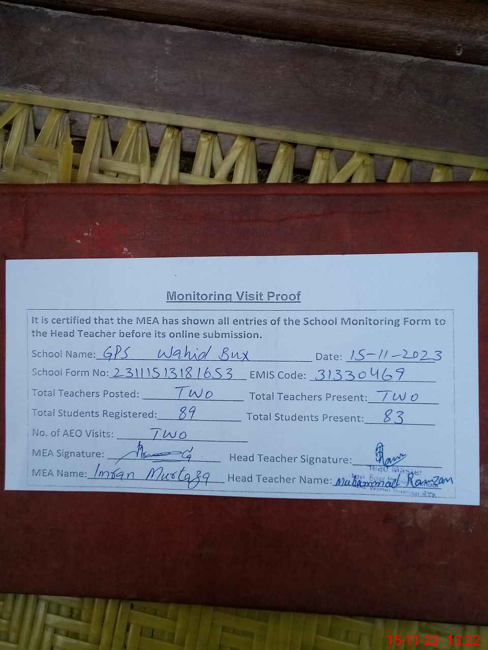 | EMIS Code: 31330469 | Name of School: GPS WAHID BUX | |||