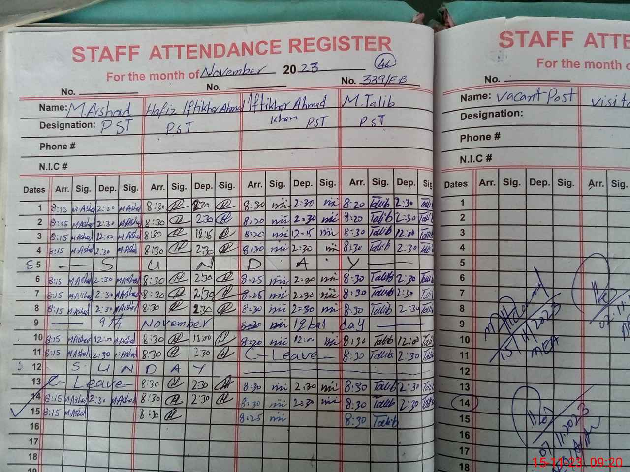 | Name: MU**** AR**** Designation: (School Headmaster's/Headmistress's) PST Phone/Cell Number: 03**** |