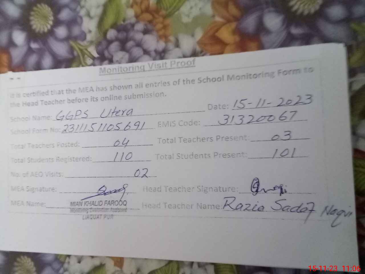 | EMIS Code: 31320067 | Name of School: GGPS UTERA | |||
