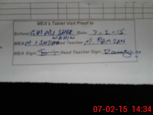 | Attendance Register | Head Teacher | MEA with School | Visit Proof |