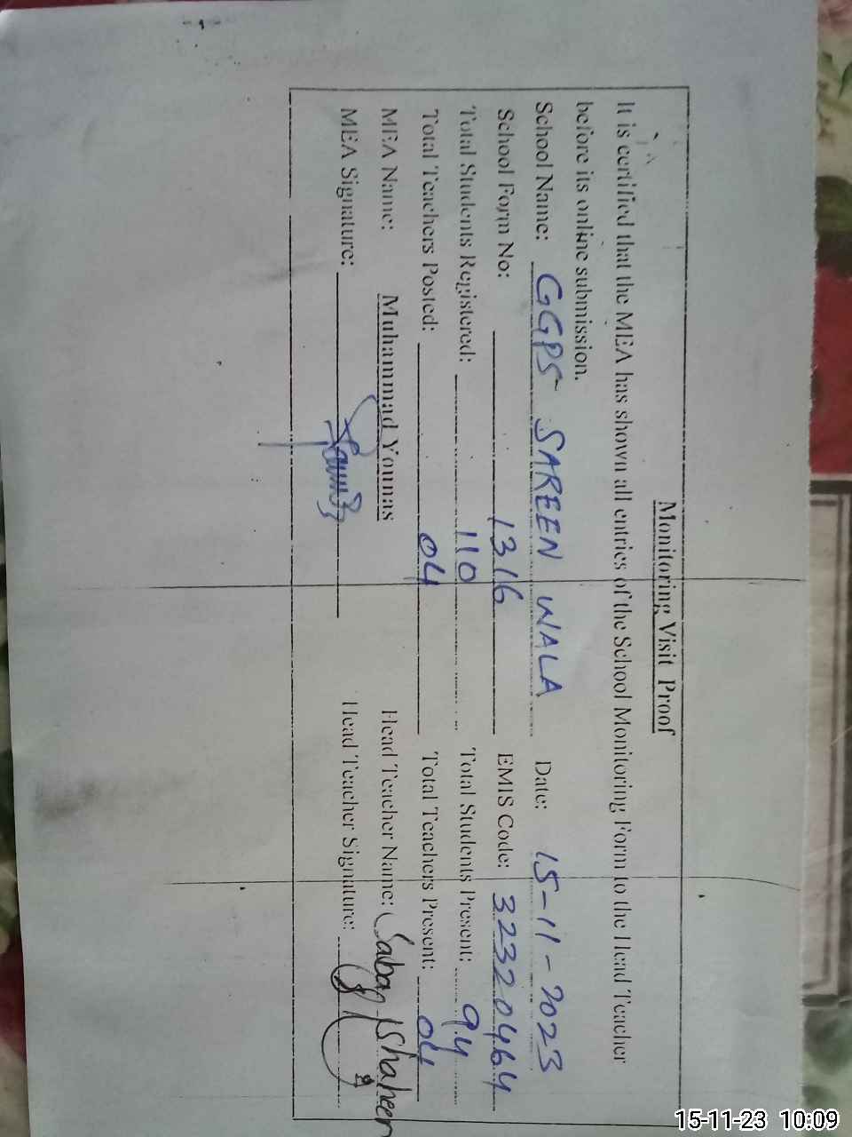 | EMIS Code: 32320464 | Name of School: GGPS SAREEN WALA | |||