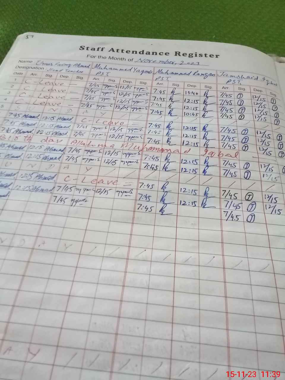| Name: Um**** Fa**** Designation: (School Headmaster's/Headmistress's) PST/PTC/JV Phone/Cell Number: 03**** |