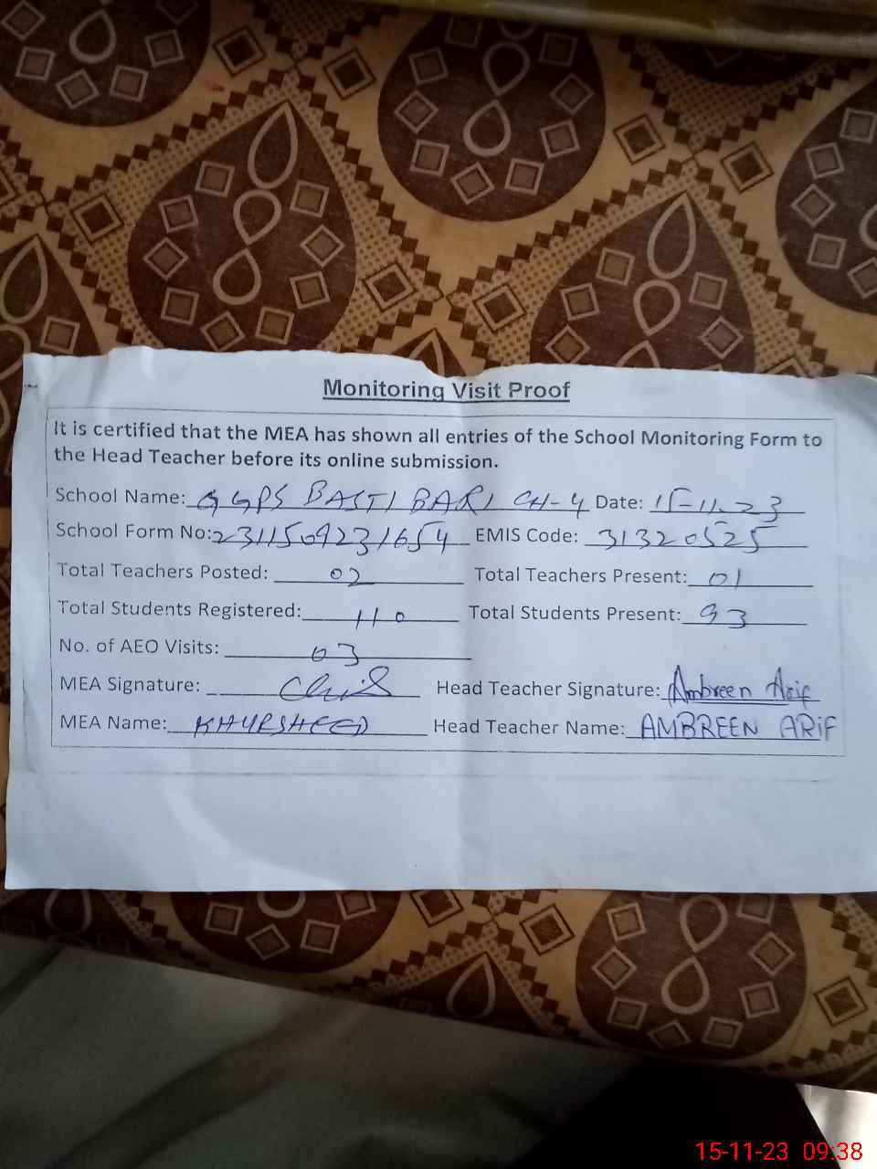 | EMIS Code: 31320525 | Name of School: GGPS BASTI BAARI 4/A | |||