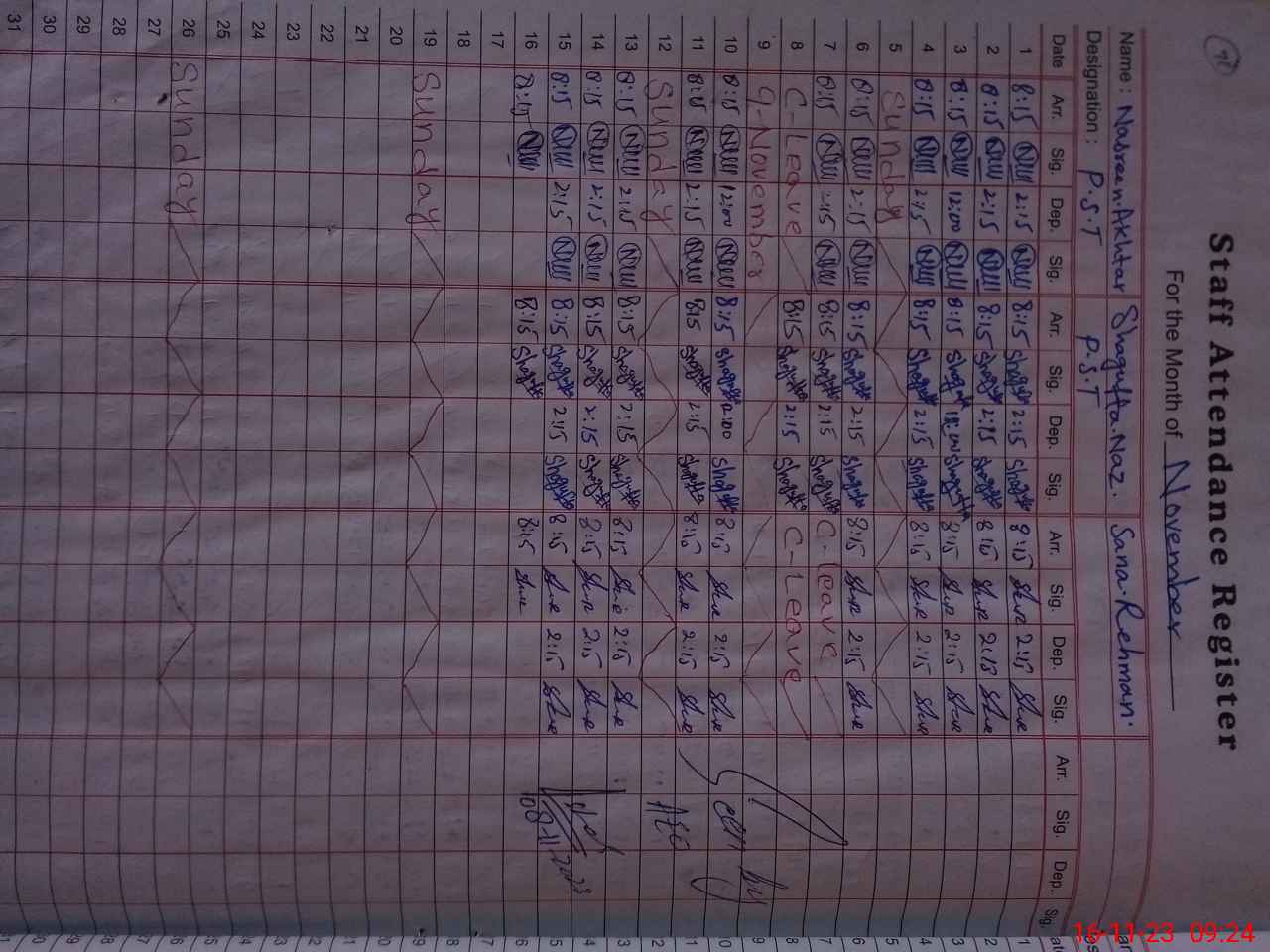 | CNIC | Full Name | Designation | R/C | Absence During Last Calender Month |