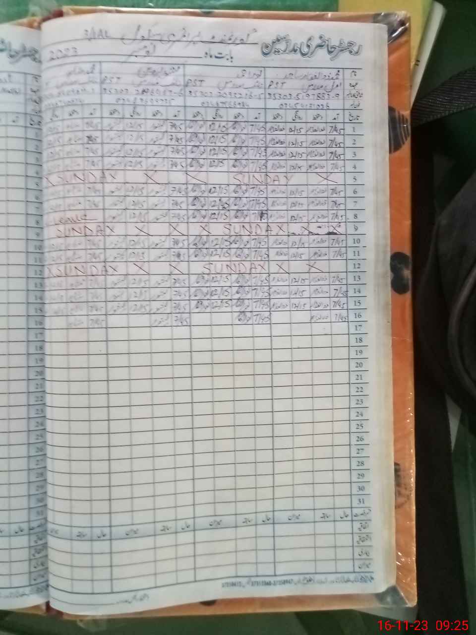 | CNIC | Full Name | Designation | R/C | Absence During Last Calender Month |