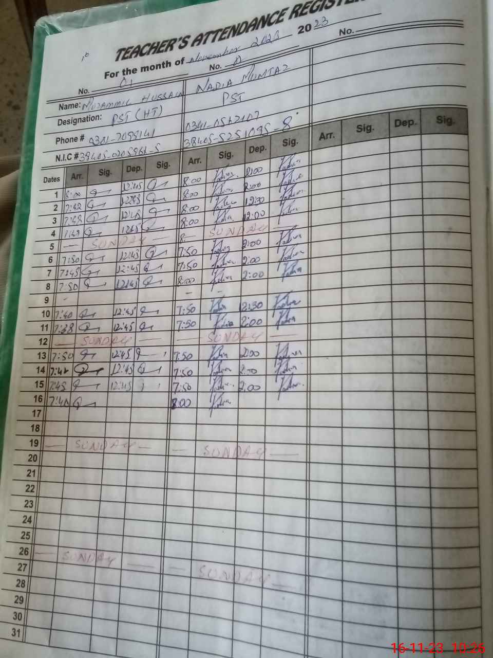 | Name: Mu**** Hu**** Designation: (School Headmaster's/Headmistress's) PST Phone/Cell Number: 03**** |