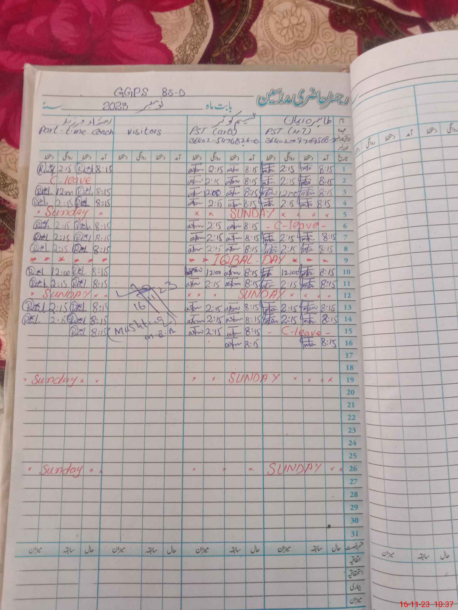 | CNIC | Full Name | Designation | R/C | Absence During Last Calender Month |