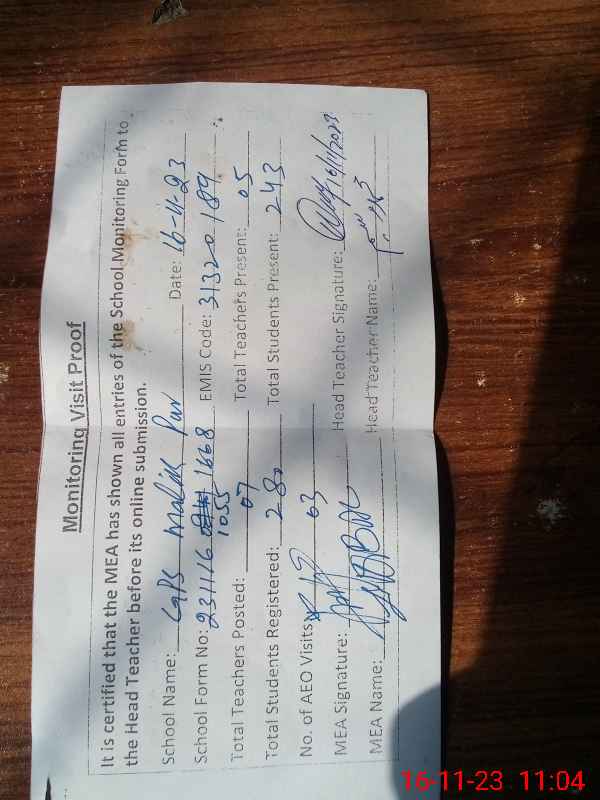 | EMIS Code: 31320189 | Name of School: GPS MALIK PUR | |||