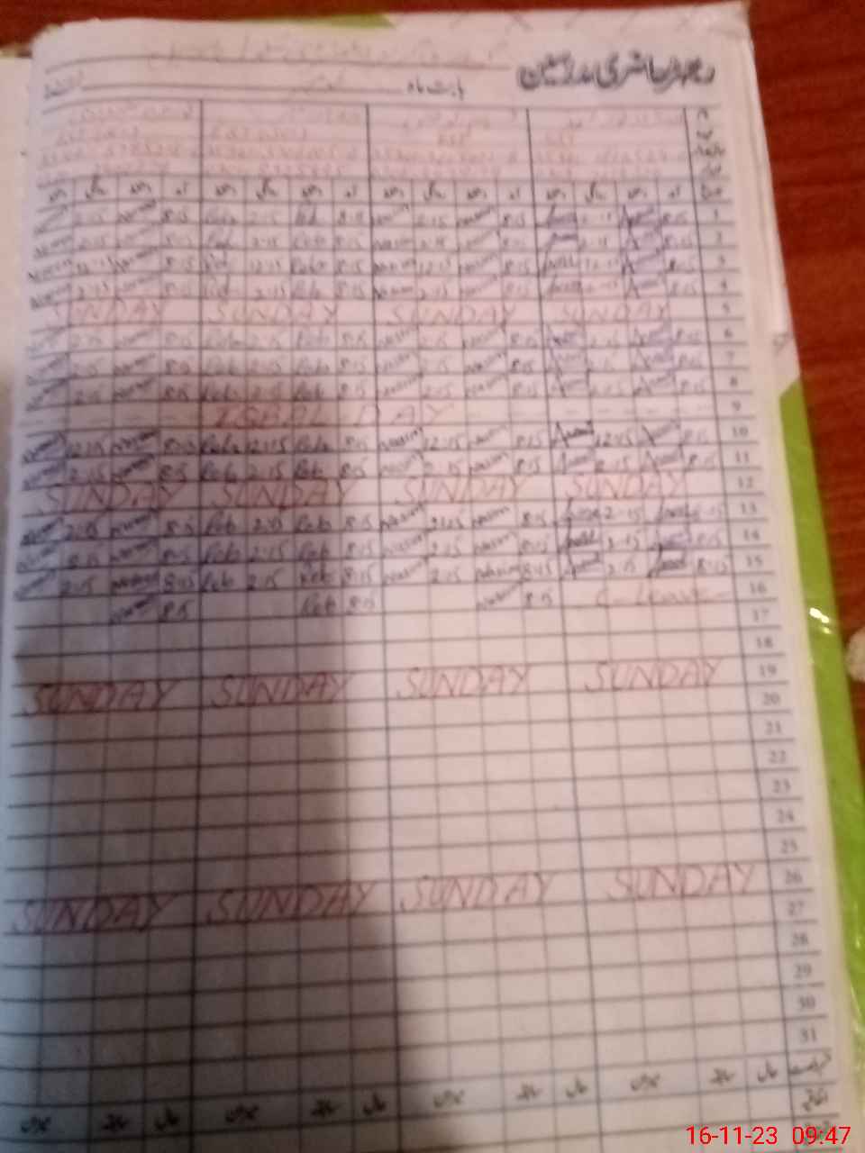 | CNIC | Full Name | Designation | R/C | Absence During Last Calender Month |