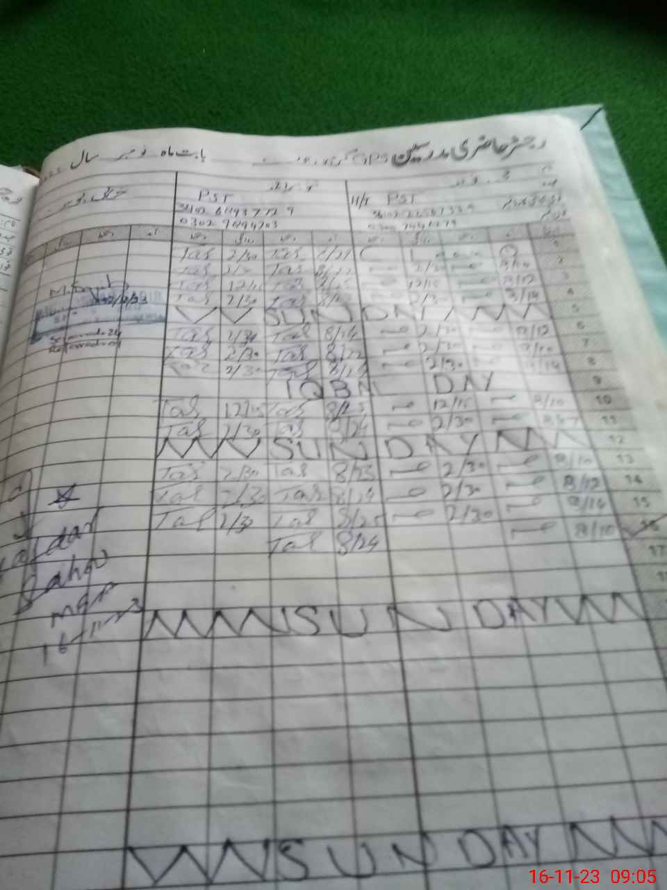 | Name: Mu**** Na**** Designation: (School Headmaster's/Headmistress's) PST Phone/Cell Number: 03**** |