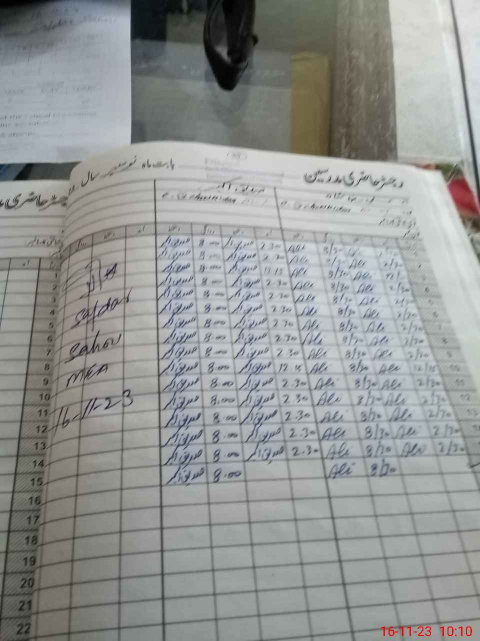 | CNIC | Full Name | Designation | R/C | Absence during last cal. month |