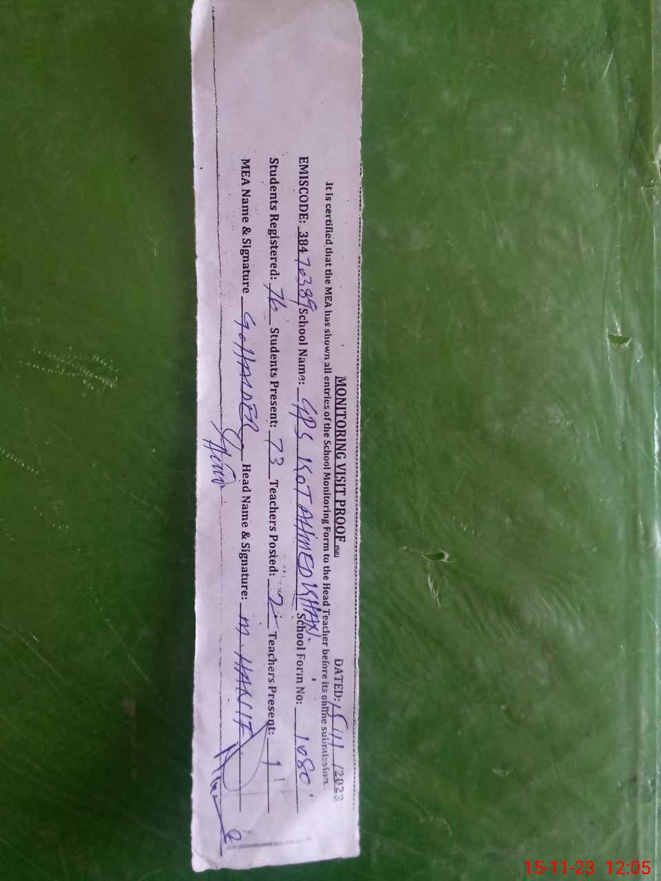 | EMIS Code: 38470389 | Name of School: GPS KOT AHMAD KHAN | |||