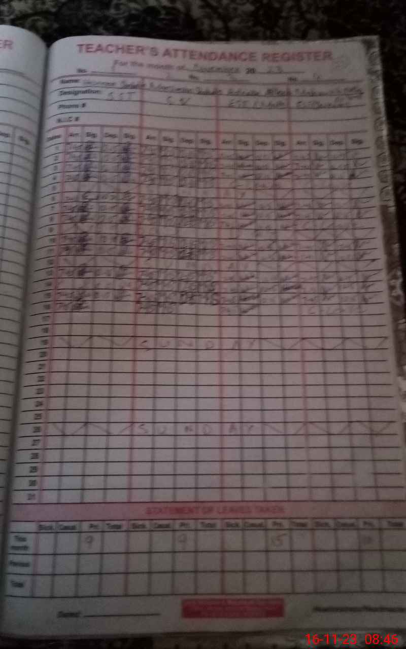 | Name: HA**** SH**** DI**** Designation: (School Headmaster's/Headmistress's) S.S.T.(SC) Phone/Cell Number: 03**** |