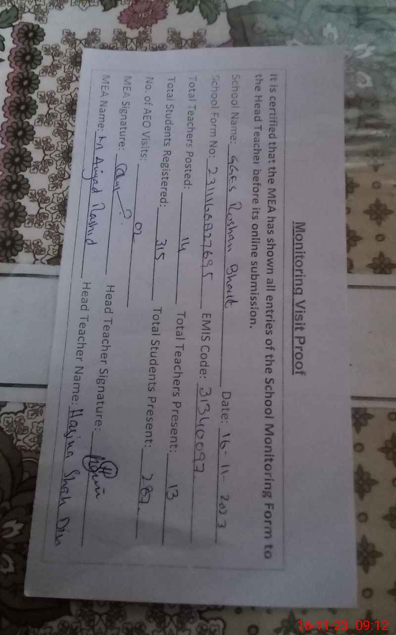 | EMIS Code: 31340097 | Name of School: GGES ROSHAN BHAIT | |||