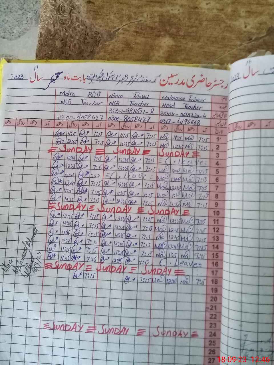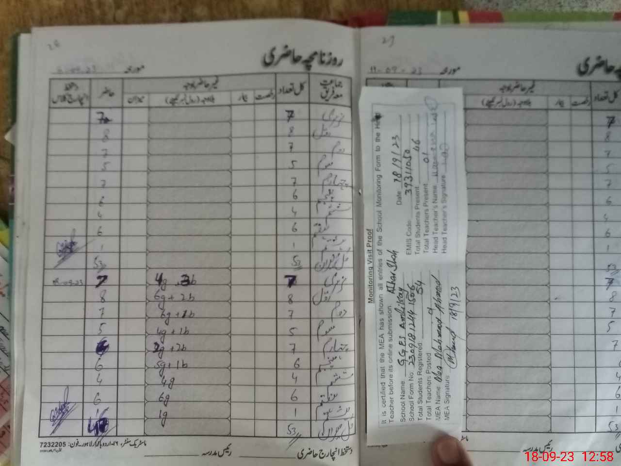 | Attendance Register | Head Teacher | MEA with School | Visit Proof |
