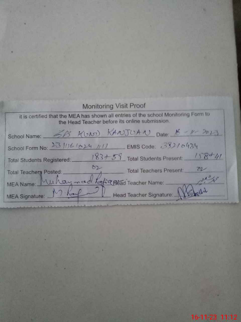 | EMIS Code: 39210434 | Name of School: GMPS KUND KANJUAN | |||