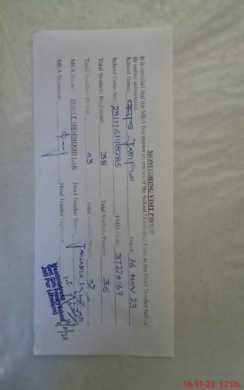 | EMIS Code: 37220167 | Name of School: GGPS JATIPUR | |||