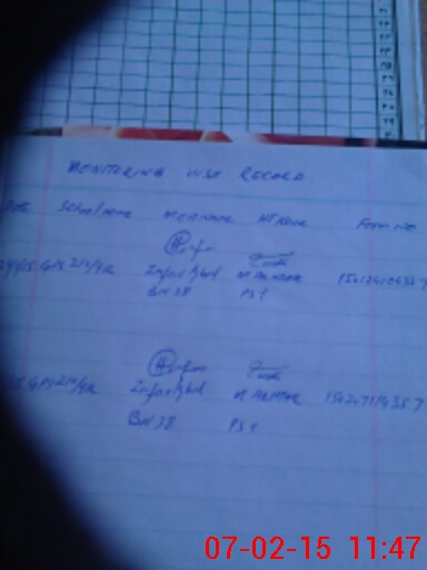 | Monitoring Date: 07-02-2015 | Start Time: 07-02-2015 11:17 AM | End Time: 07-02-2015 11:48 AM | Name of MEA: Za**** Iq**** BN**** | |