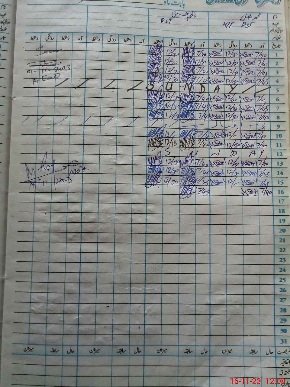 | CNIC | Full Name | Designation | R/C | Absence During Last Calender Month |