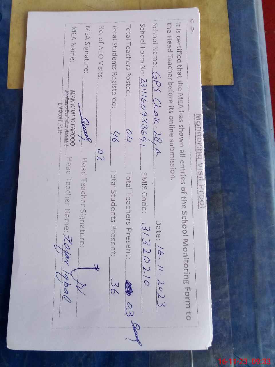 | EMIS Code: 31320210 | Name of School: GPS CHAK 28 A | |||