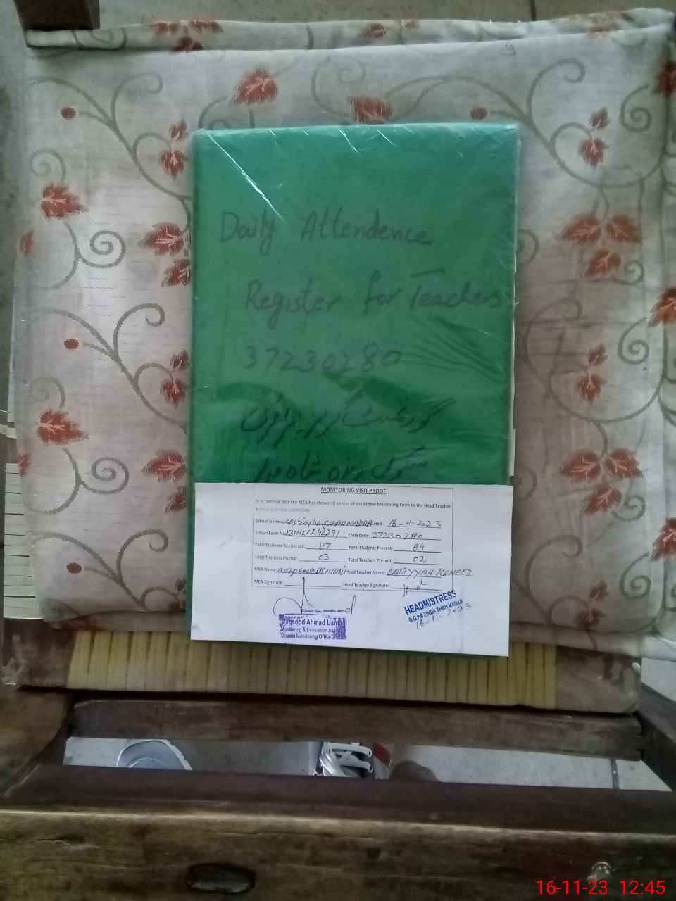 | Attendance Register | Head Teacher | MEA with School | Visit Proof |