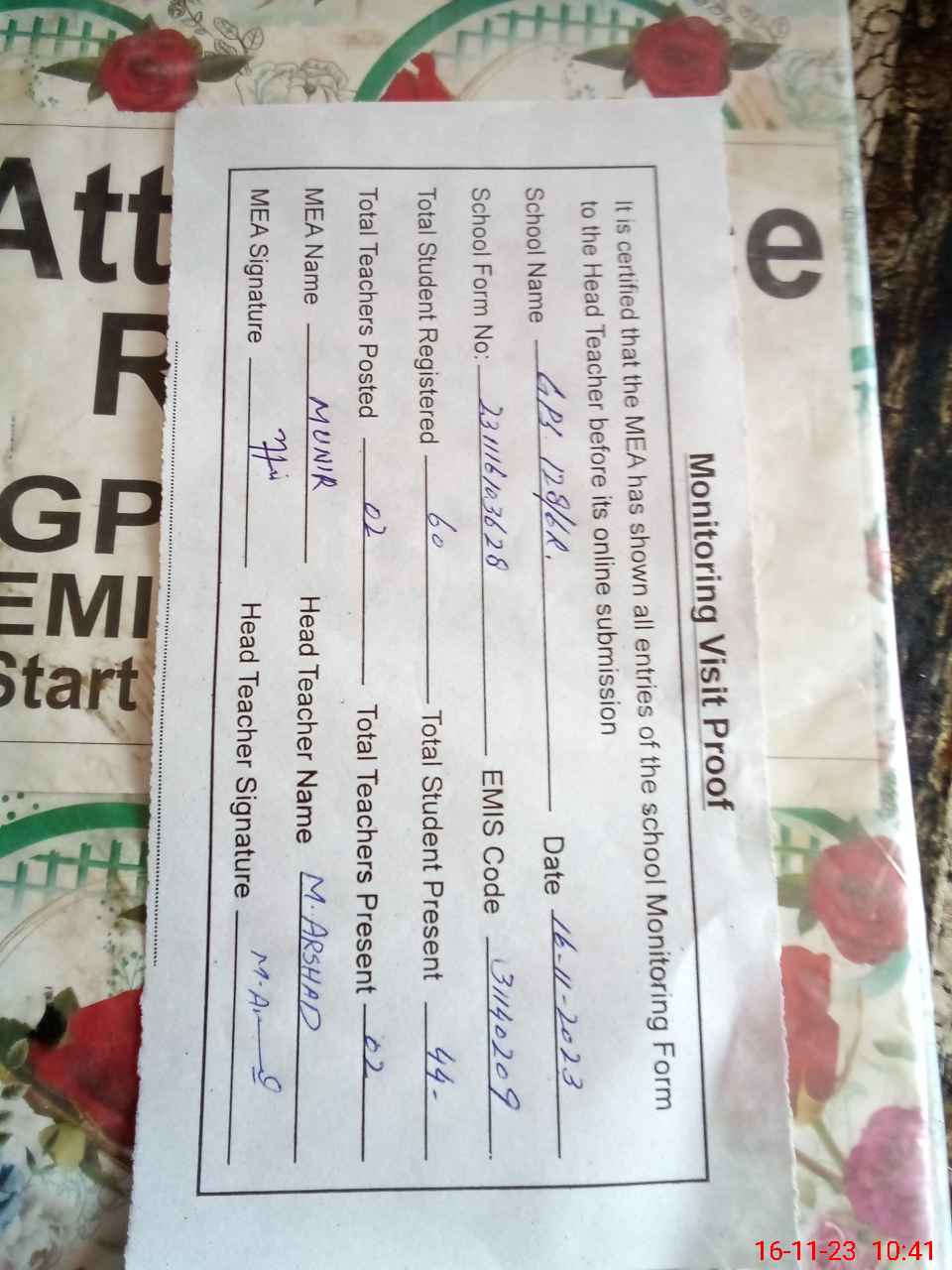 | EMIS Code: 31140209 | Name of School: GPS CHAK NO 128/6-R | |||