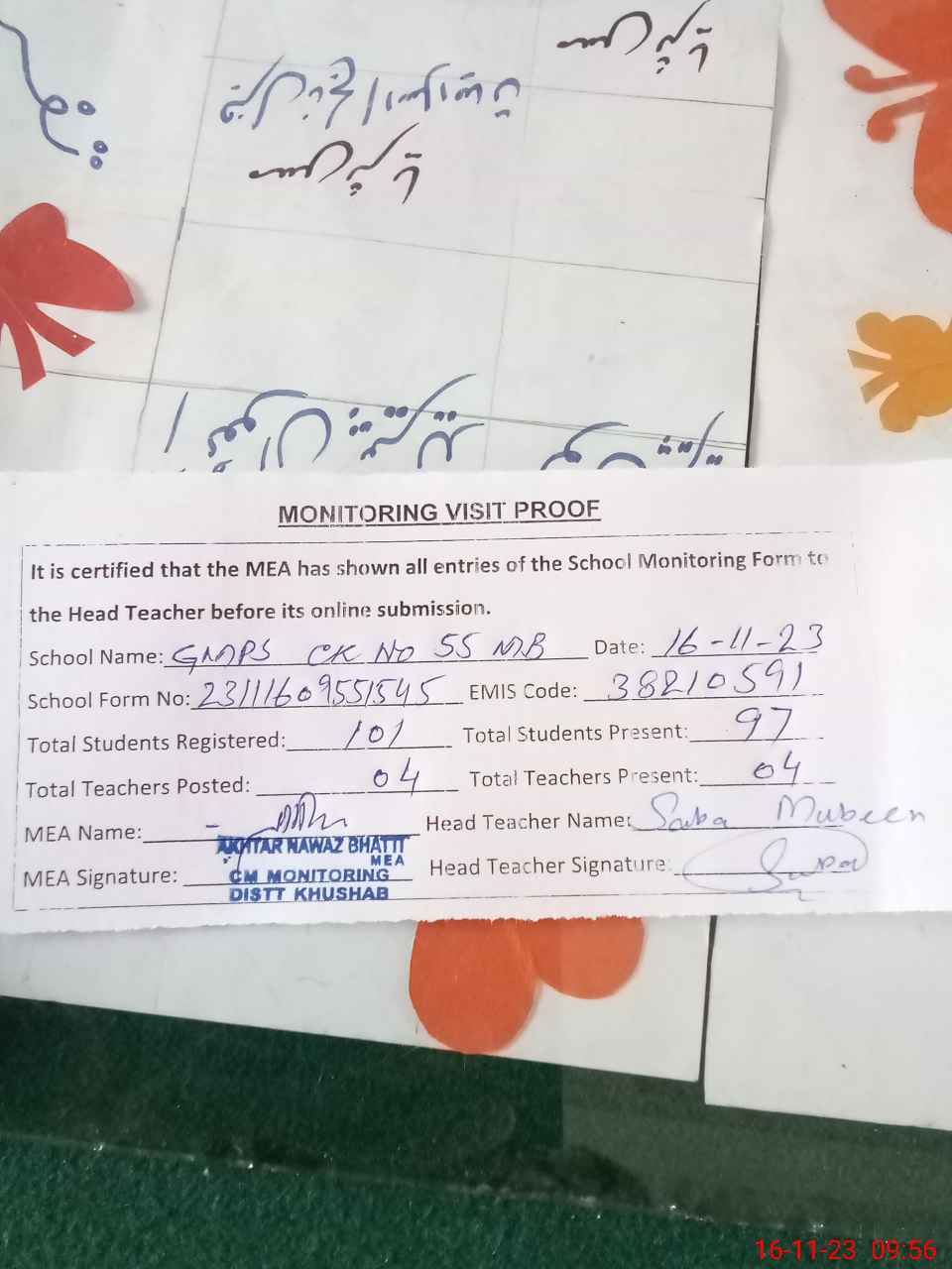 | EMIS Code: 38210591 | Name of School: GMPS CHAK NO. 55 MB | |||