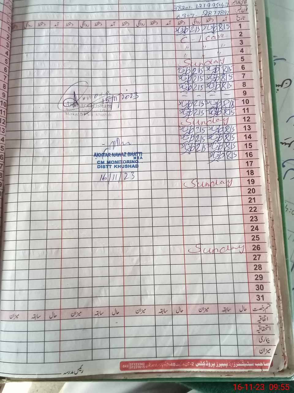 | CNIC | Full Name | Designation | R/C | Absence During Last Calender Month |