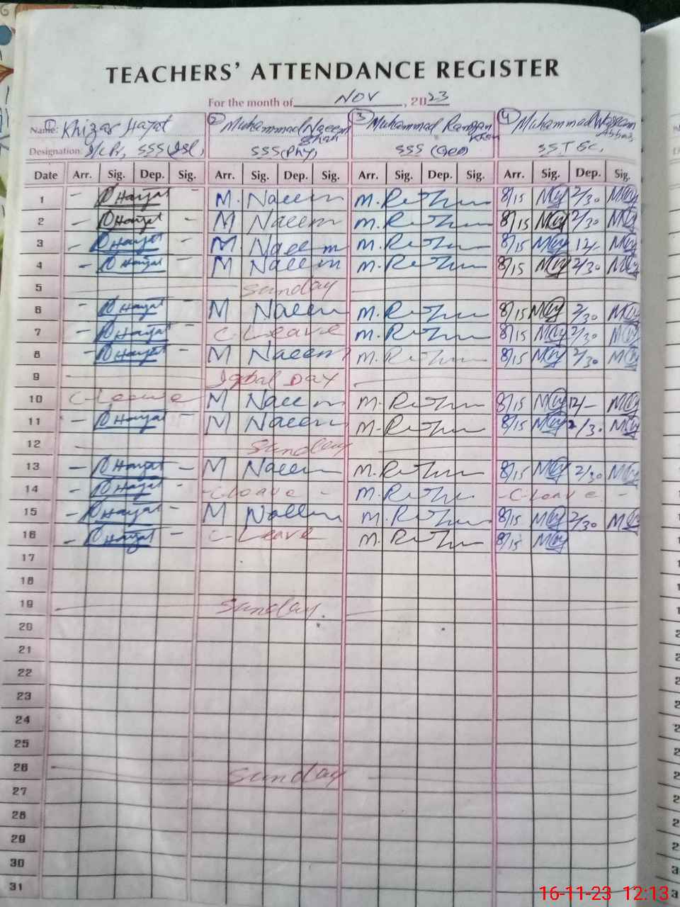 | 33**** | Sh**** UrRe**** | JC | Regular | 0 | 0 | 0 | 0 | 0 | 0 | 0 | 0 | 0 | Absent (Un-Authorized) |