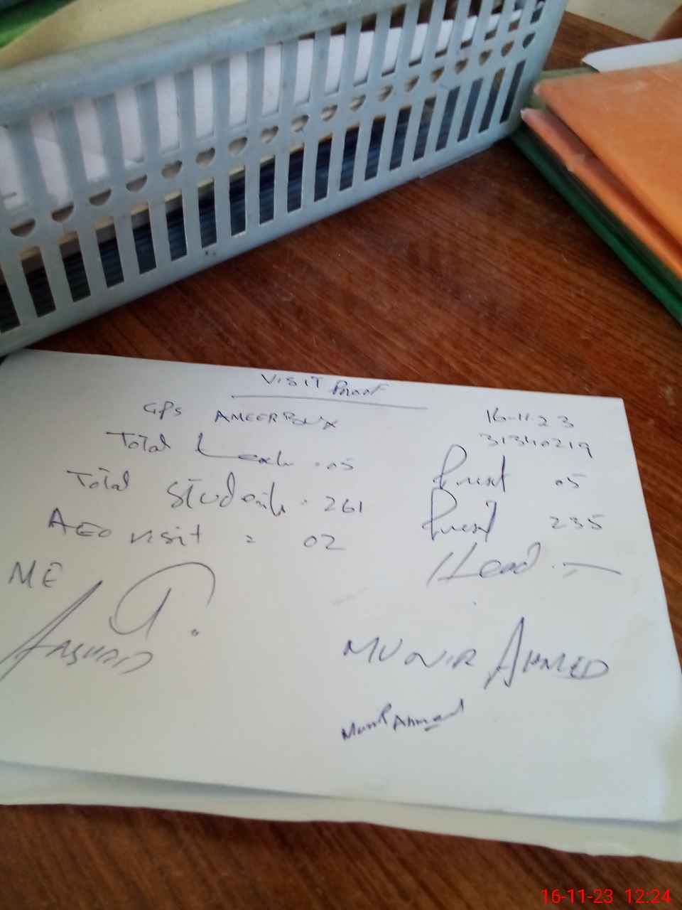| EMIS Code: 31340219 | Name of School: GPS BASTI AMIR BUX | |||