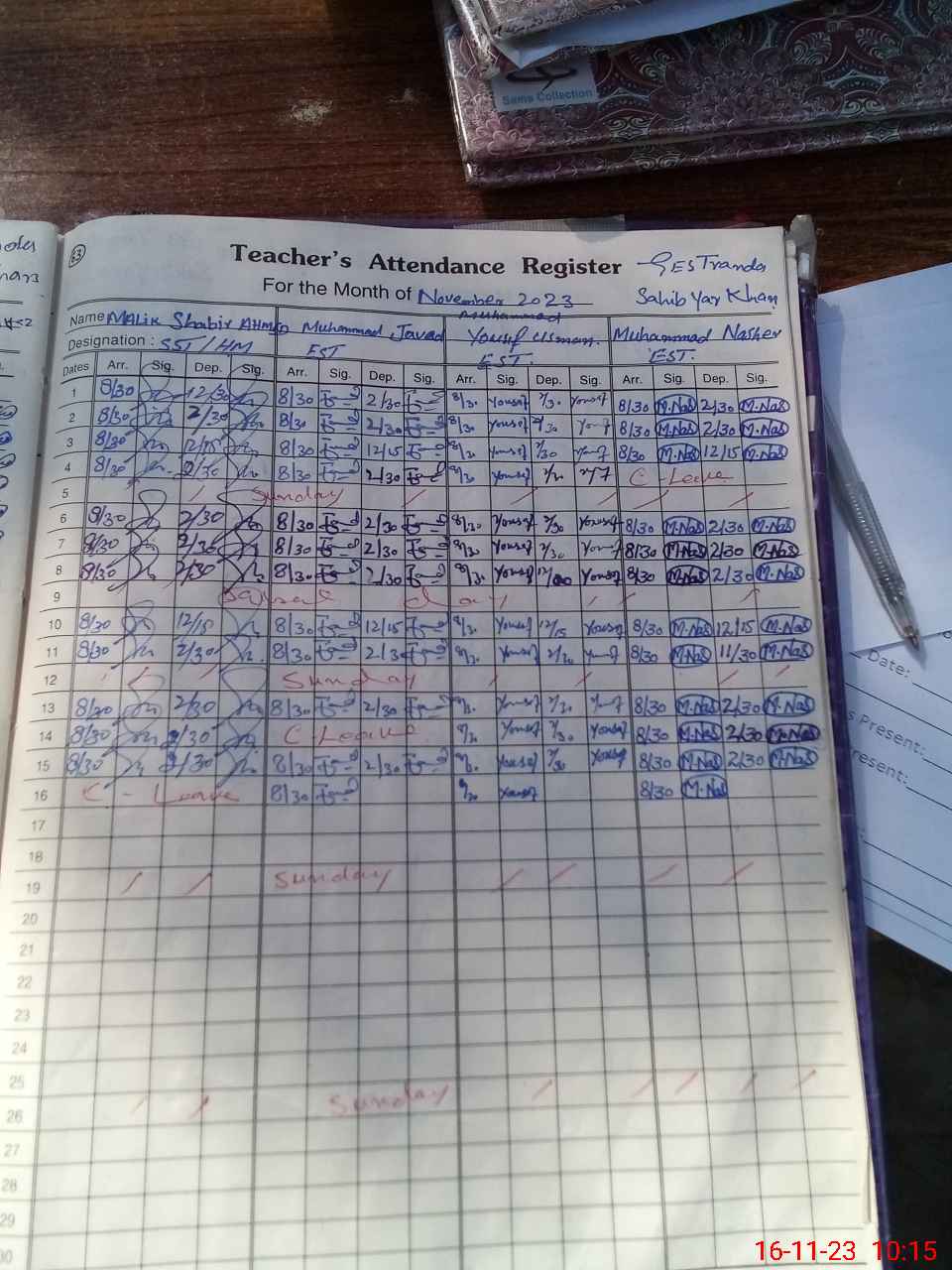 | CNIC | Full Name | Designation | R/C | Absence During Last Calender Month |