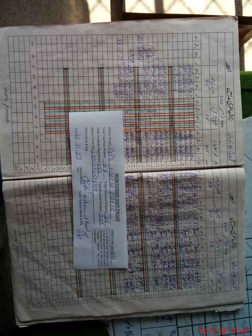 | Attendance Register | Head Teacher | MEA with School | Visit Proof |