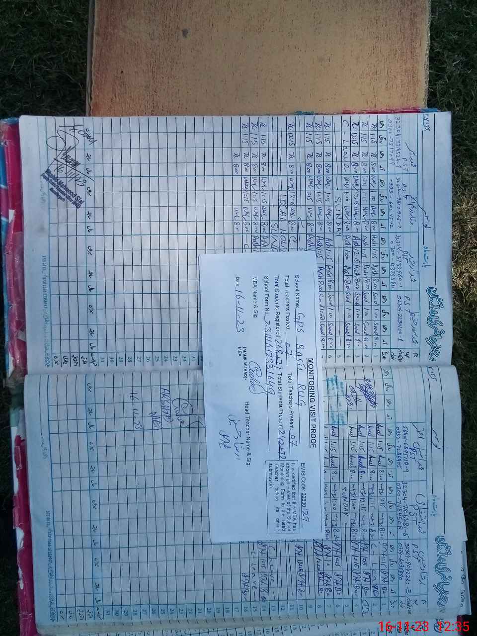 | Attendance Register | Head Teacher | MEA with School | Visit Proof |