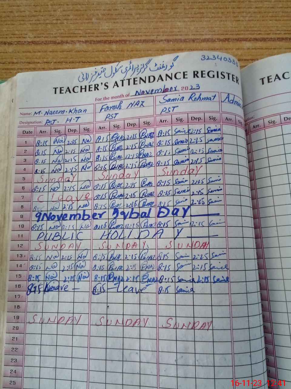 | Name: MNa**** Designation: (School Headmaster's/Headmistress's) PST/PTC/JV Phone/Cell Number: 03**** |