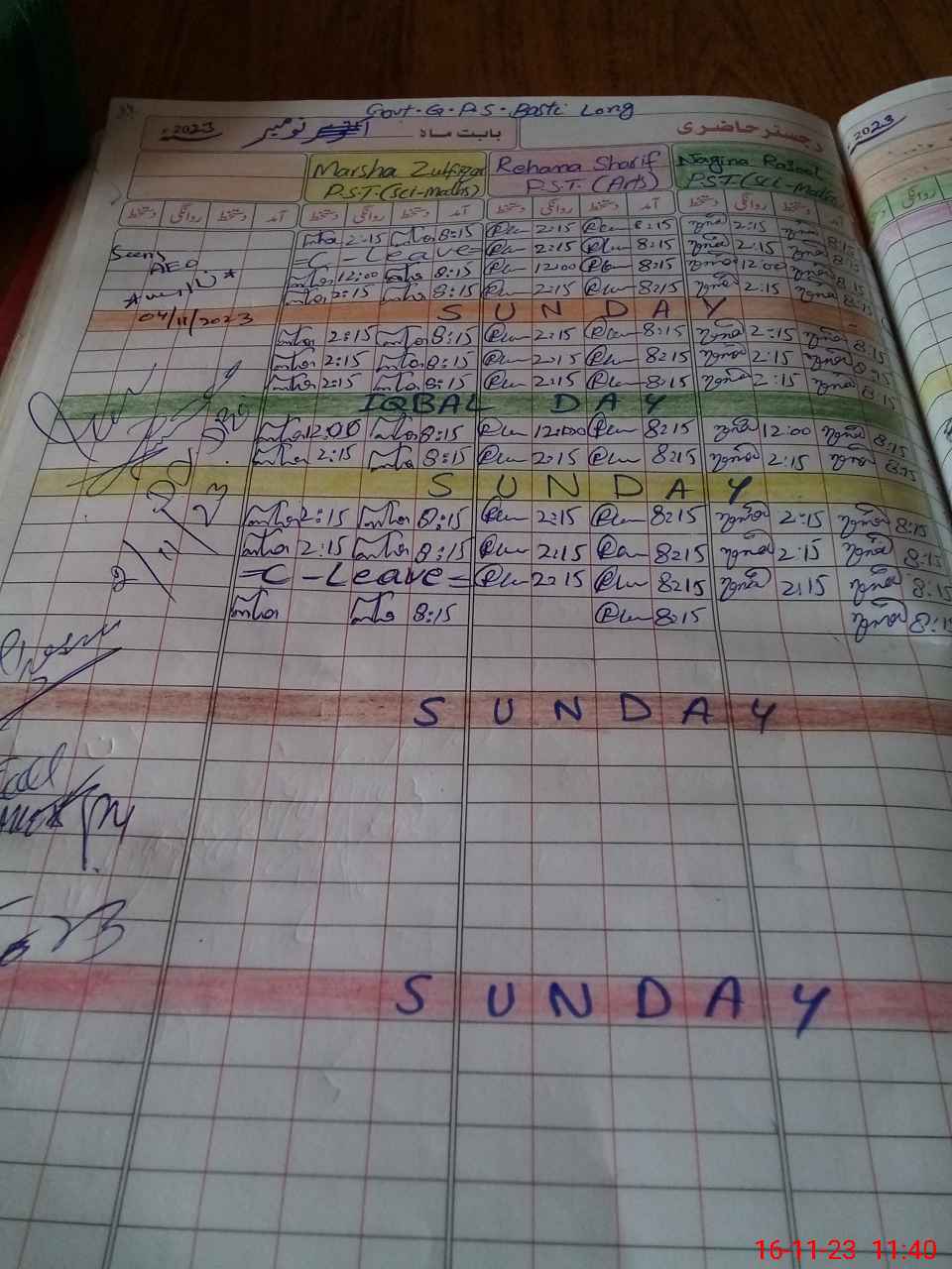 | CNIC | Full Name | Designation | R/C | Absence During Last Calender Month |
