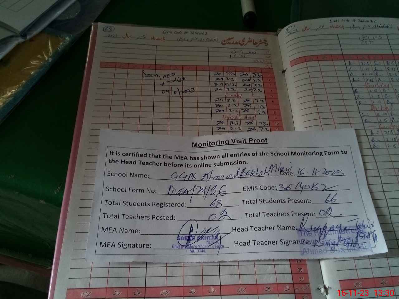 | EMIS Code: 36140162 | Name of School: GGPS AHMAD BUKHSH MIANI JALALPUR PIRWALA | |||