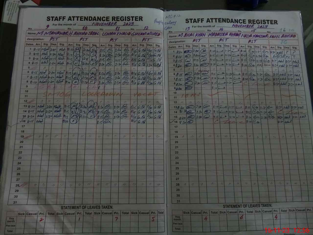 | EMIS Code: 34110555 | Name of School: GHS MC NO.12 PEOPLES COLONY | |||