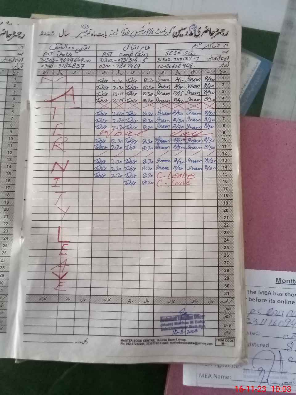 | Name of AEO: | AEO Contact No.: | MEA Phone#: 03**** 03**** | ||